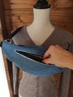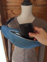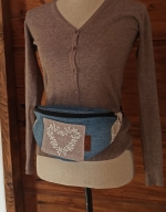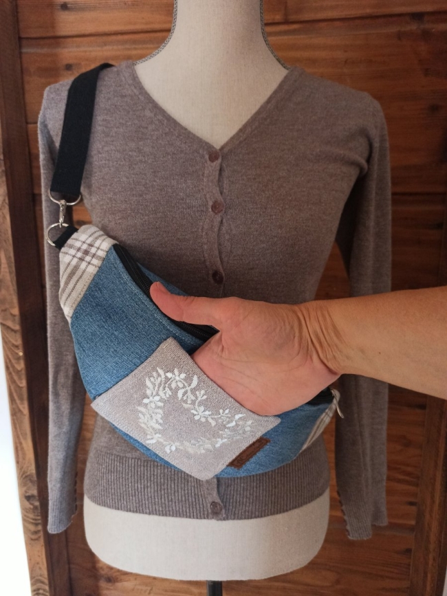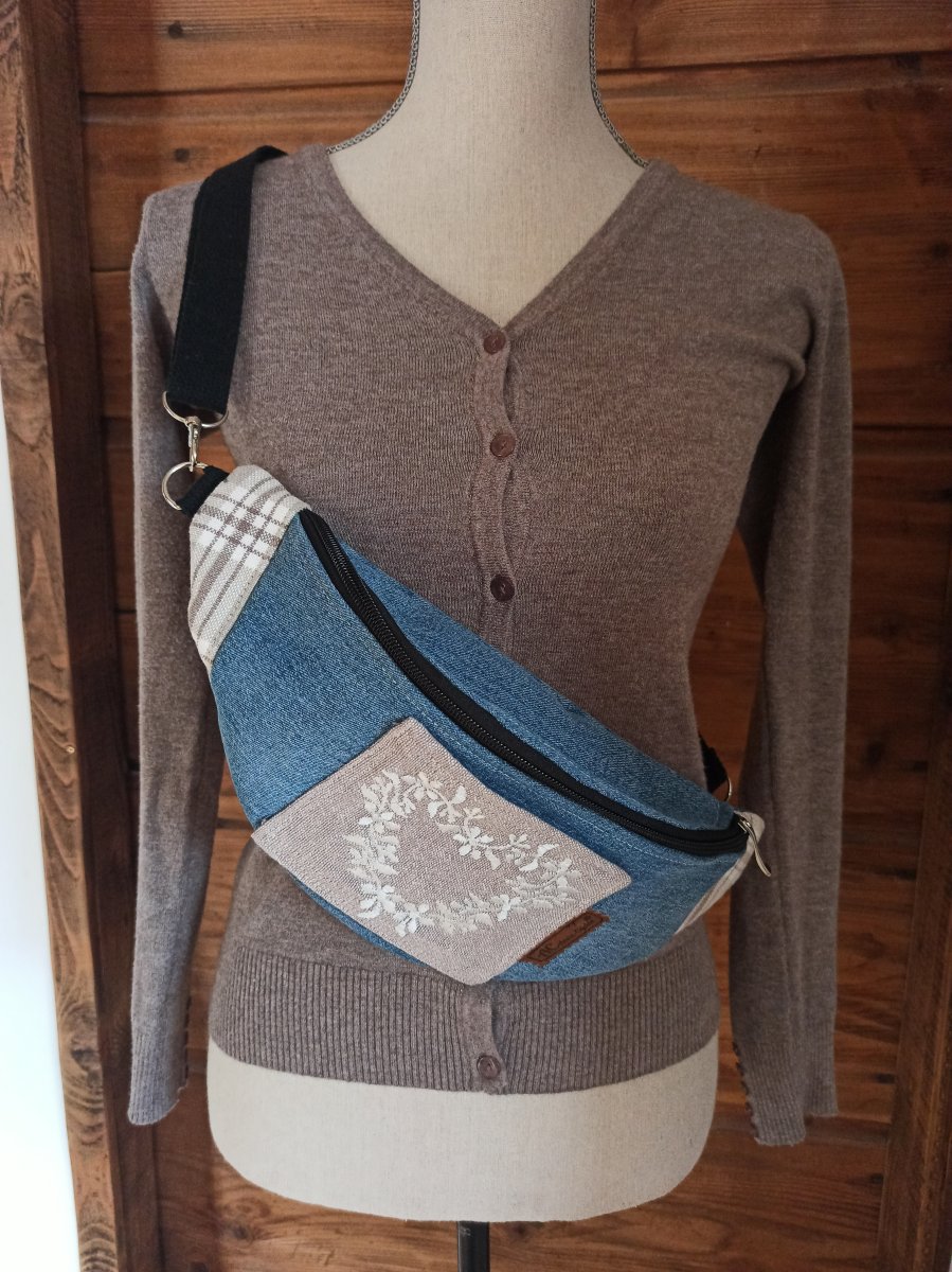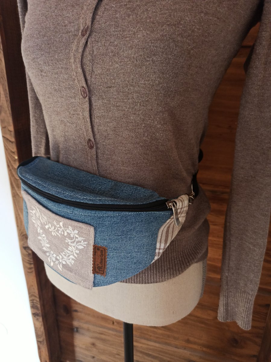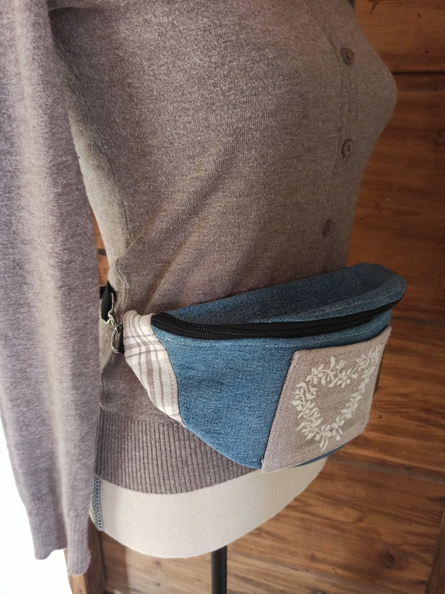 Banane en jean upcyclé avec broderie cœur – Poche téléphone | Anne-cyclee