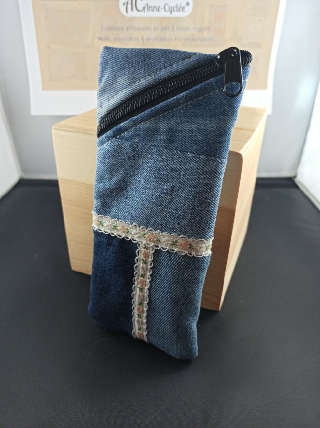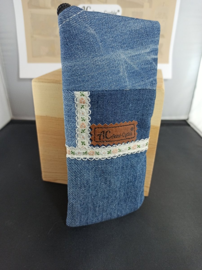 Étui à lunettes en jean patchwork avec dentelle – Anne-Cyclée