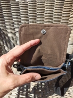 Pochette artisanale réalisée à partir de jean recyclé bleu, au style sobre et masculin. Les coutures apparentes du jean utilisé apportent un relief subtil et une touche originale, tandis qu’une petite étiquette “Anne Cyclée” marron est cousue en bas à gauche pour signer la création. L’intérieur est doublé d’un tissu marron recyclé, assorti et élégant.