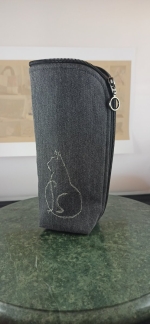rousse debout en jean noir recyclé chat brodé – Anne Cyclée