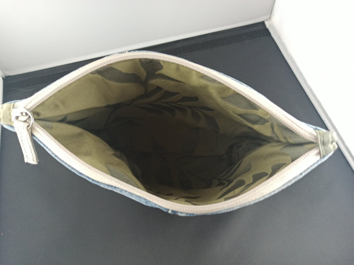 Cette petite trousse est faite main en jean upcyclé et ornée de broderies délicates sur le thème de l’automne, réalisées entièrement à la main. Ses teintes chaudes et ses détails raffinés en font une pièce unique, idéale pour ranger maquillage, accessoires, petits objets ou papeterie.