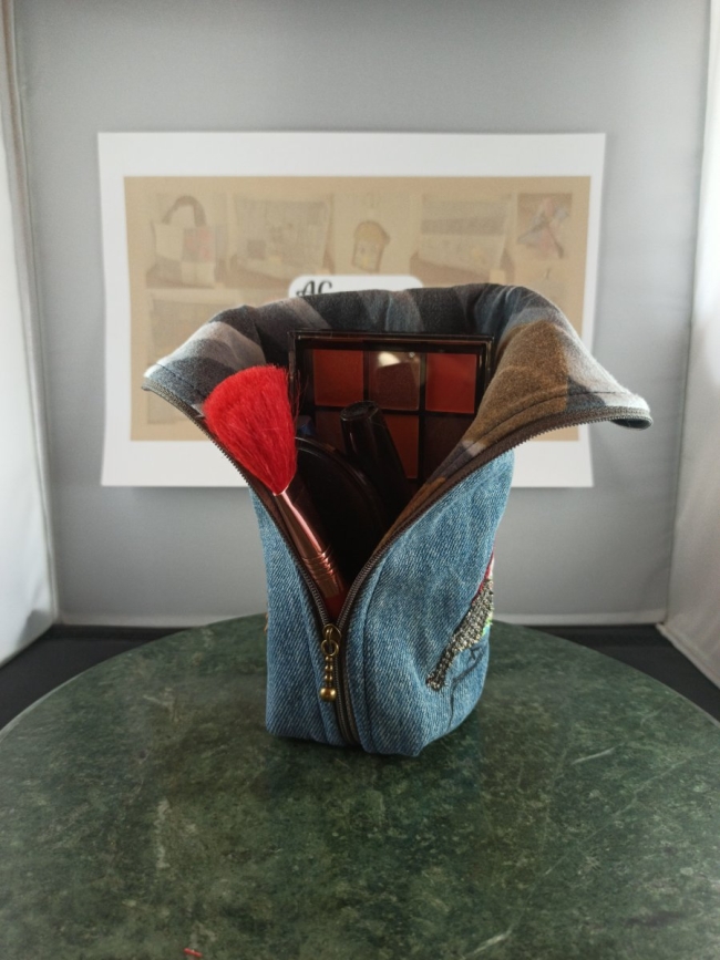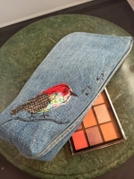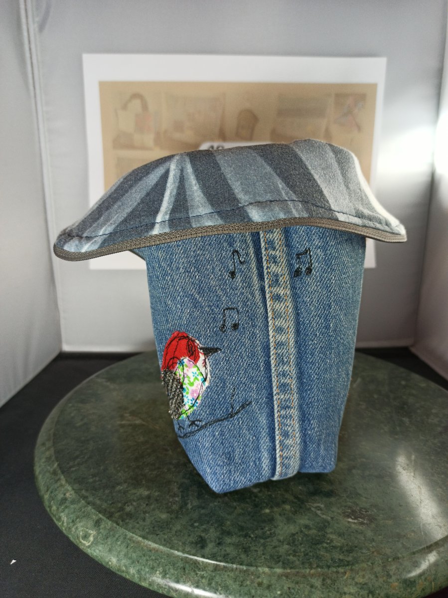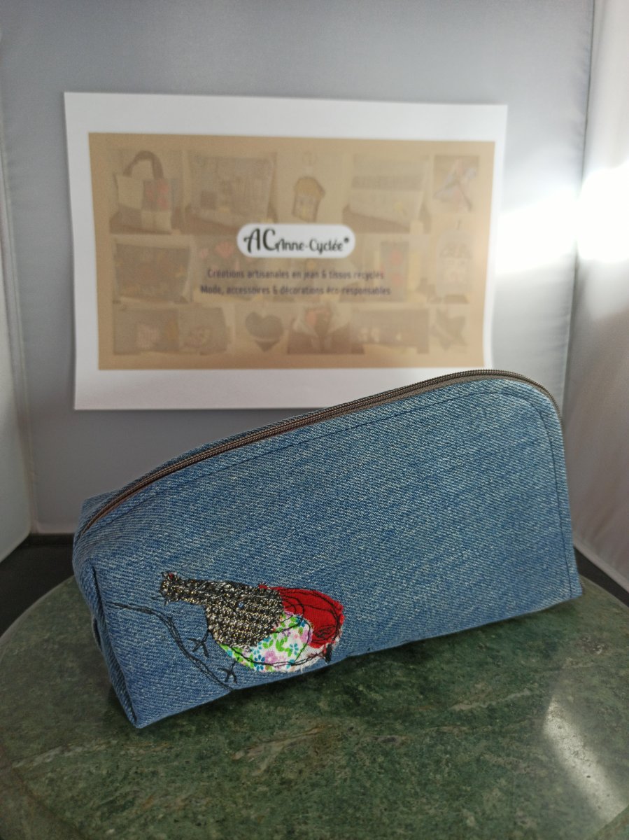 Trousse debout en jean recyclé oiseau appliqué – Anne Cyclée
