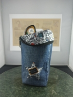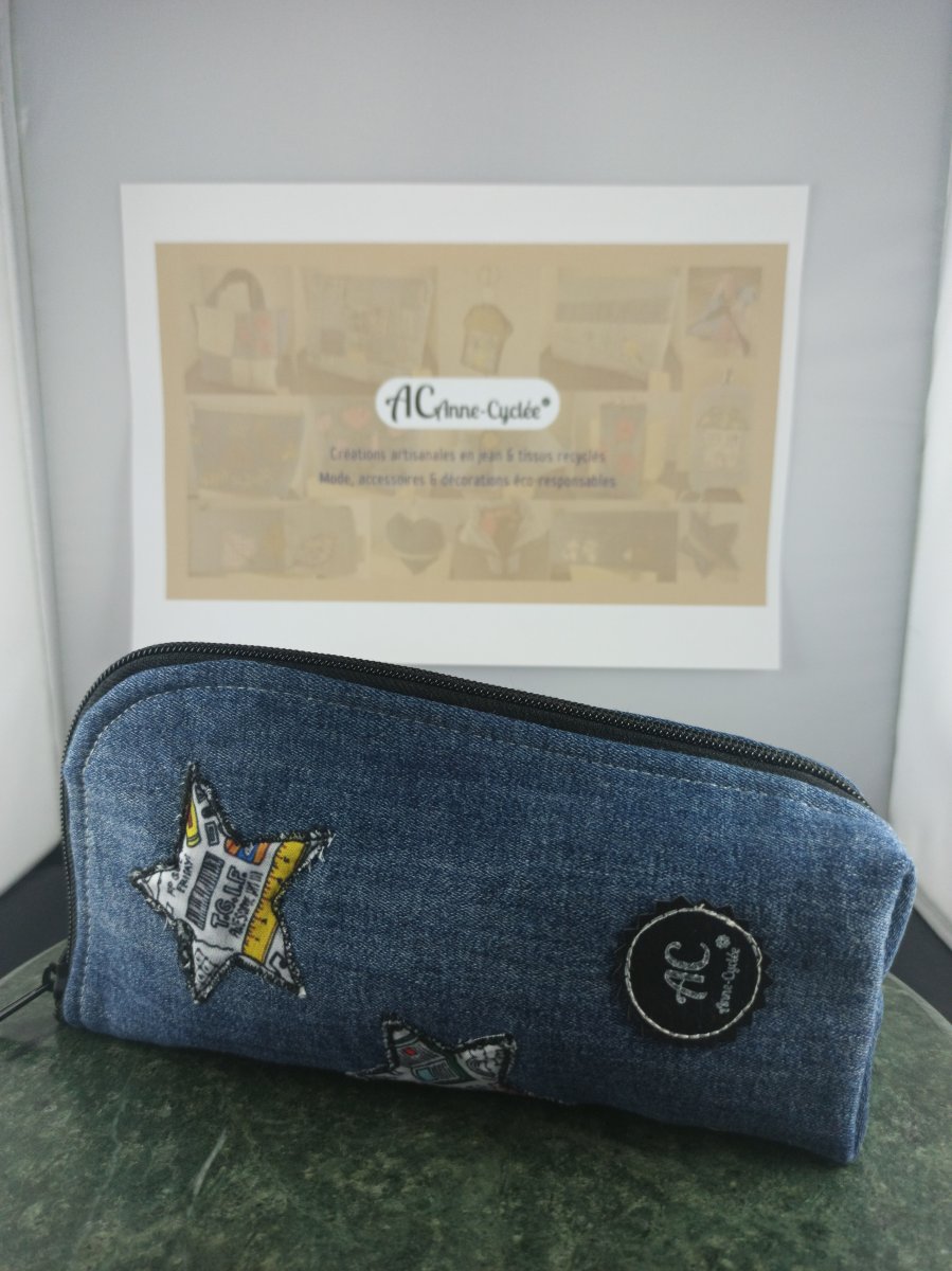Trousse debout en jean upcyclé – Molletonnée avec appliqués étoiles | Anne-cyclee