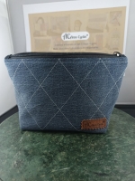 Trousse en denim foncé à motif losanges brodés
