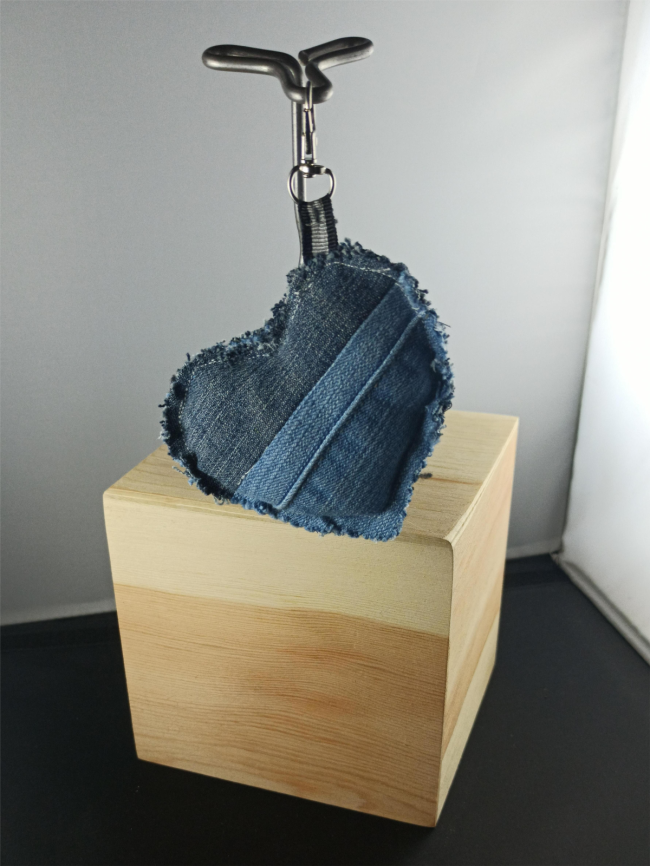 Craquez pour ce porte-clés unique, fabriqué à la main en jean upcyclé.