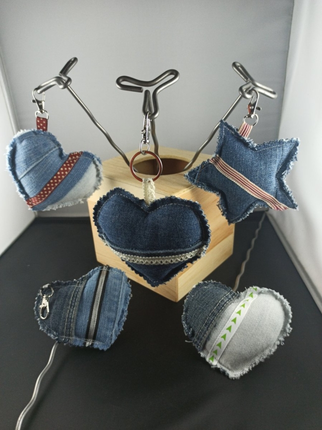 Craquez pour ce porte-clés unique, fabriqué à la main en jean upcyclé.