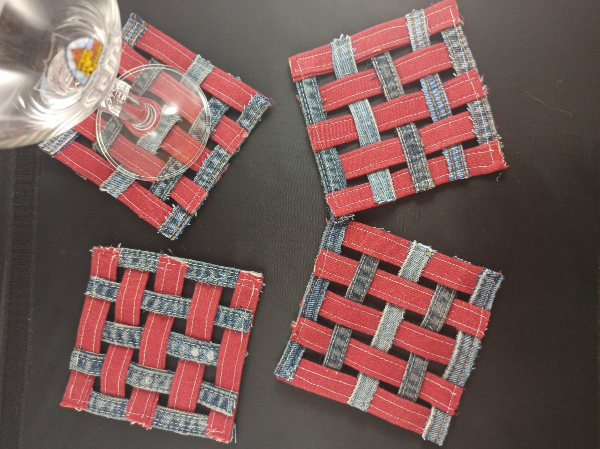 Confectionnées à la main à partir de coutures de jeans recyclés.
